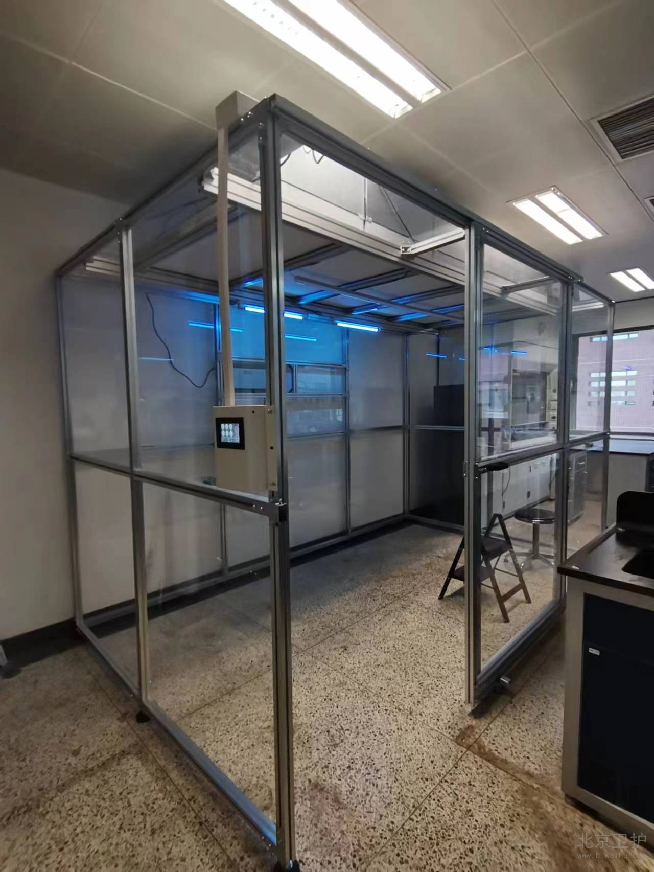 9月份我公司接到此項(xiàng)目后便抓緊時(shí)間出具相關(guān)方案、設(shè)計(jì)圖紙,經(jīng)過(guò)不斷的溝通和改動(dòng),最終確定施工方案。此單位潔凈棚設(shè)計(jì)面積20平米,主體材質(zhì)為鋁型材,隔離板使用亞格力板,頂部配有紫外線(xiàn)燈輔助殺菌,過(guò)濾系統(tǒng)為百級(jí)凈化模塊,并配有我公司研發(fā)的控制系統(tǒng)。從最初的方案設(shè)計(jì)、安裝施工,到最后的驗(yàn)收,總工期為10個(gè)工作日。